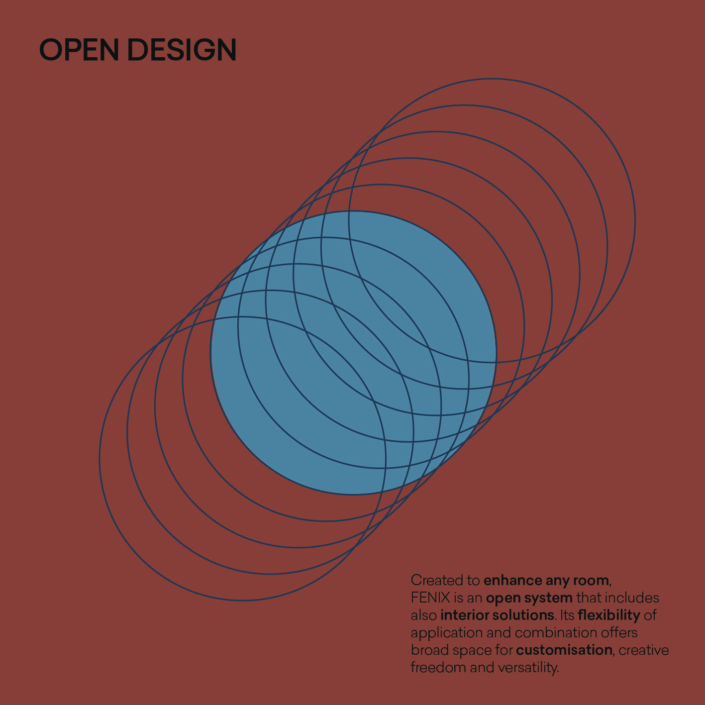 The “packaged” logo represents the idea of unity/ uniqueness and cyclicity. Unity/Uniqueness: the first decade of FENIX celebrates the proprietary technology that has made the material unique thanks to its high resistance and compactness.